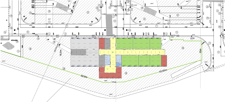 De tijdelijke huisvesting bestaat uit koppelbare units. Deze moeten voldoen aan het meest recente bouwbesluit. De lokalen moeten ook hetzelfde voorzieningenniveau hebben als in het huidige gebouw. In het gebouw zijn in totaal acht lokalen. Daarbij gaat het om twee technieklokalen en daarnaast drie grote en drie kleine theorielokalen. Verder zijn er enkele kleine werk- en overlegruimten, technische ruimten en de noodzakelijke sanitaire groepen.