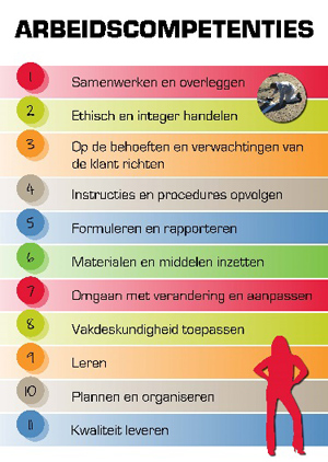 Als voorbereiding op stage en werk trainen wij onze leerlingen in de algemene arbeidscompetenties (zie afbeelding).
